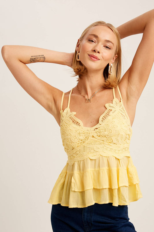 Lace Bodice Tiered Peplum Cami Top