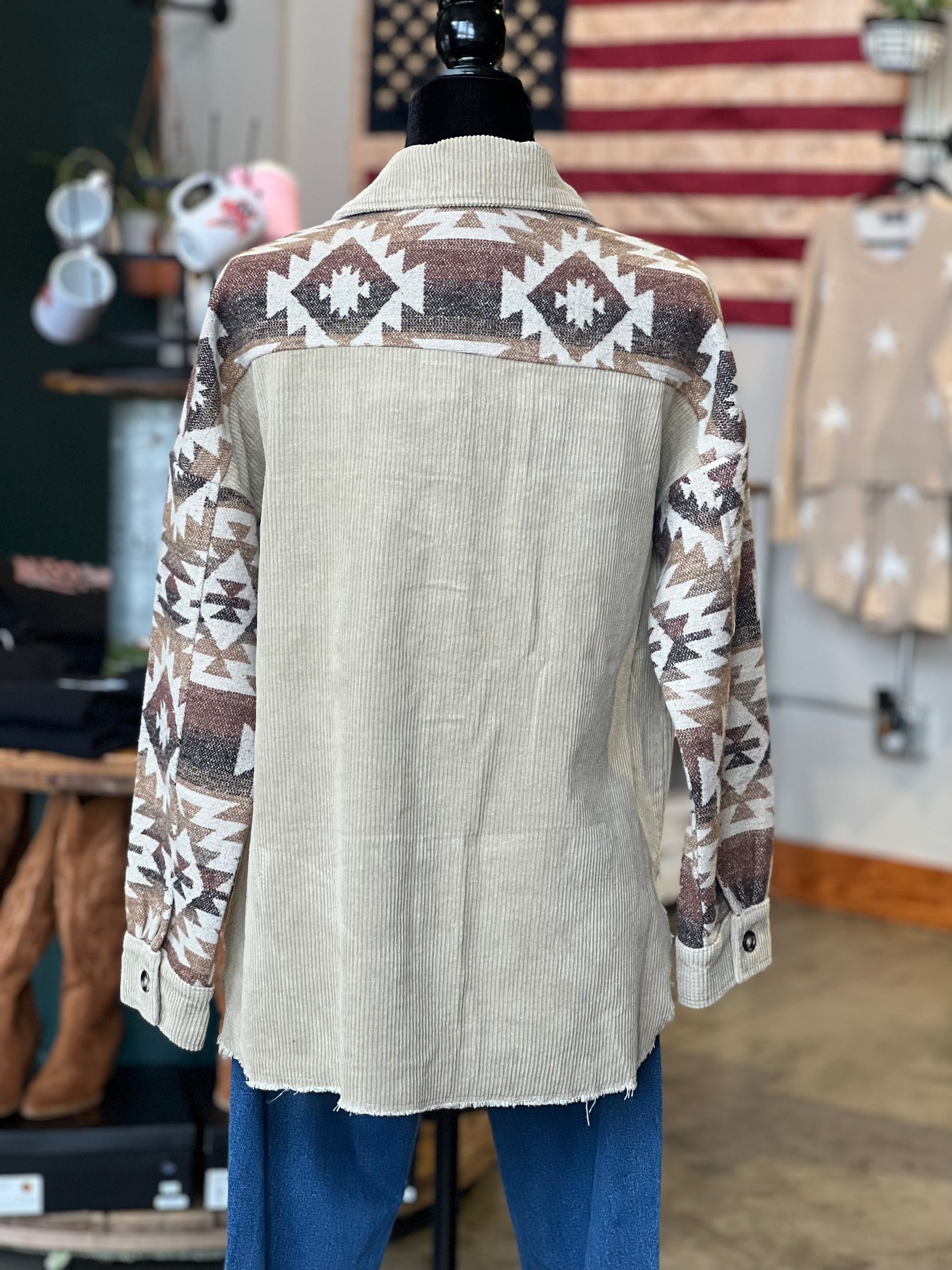 Brown Corduroy Aztec Shacket