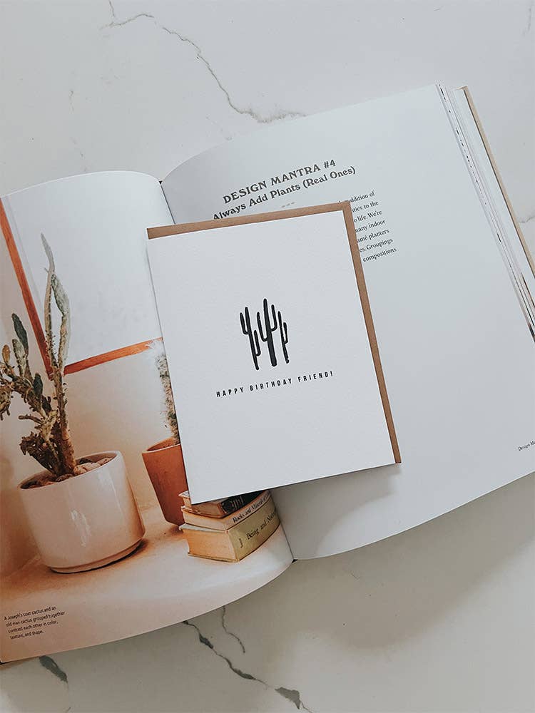 Discover the charm of Maddon and Co's Cactus Happy Birthday Card. This A2 card, accompanied by a Kraft envelope, is a perfect way to send your warm birthday wishes. Crafted with a commitment to the environment, we use recycled materials for all our paper goods, envelopes, and shipping packaging. This black birthday card, adorned with a playful cactus design, not only brings joy to the recipient but also contributes to a noble cause. With each purchase, we donate 10% of the proceeds to The Braver Collective, supporting survivors of sexual trauma and childhood sexual abuse. Share love, spread joy with Maddon and Co.