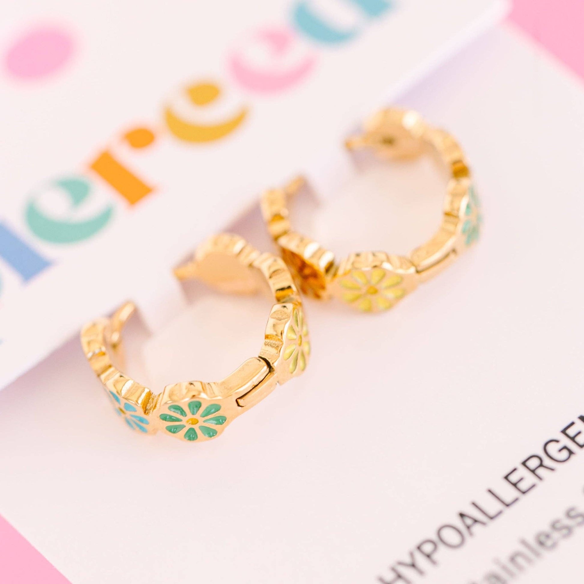 High-quality earrings made for girls with sensitive ears and to join them on their everyday adventures. We are passionate about creating classic and fun designs inspired by the curiousness of childhood. Materials * Surgical grade stainless steel * 18K gold plated * Lead & nickel free * Always hypoallergenic Details * 9mm clasp huggies * Water-resistant- can be worn in the pool and bath Exclusive Pierced Co Extras * 100% guaranteed to be sensitive free