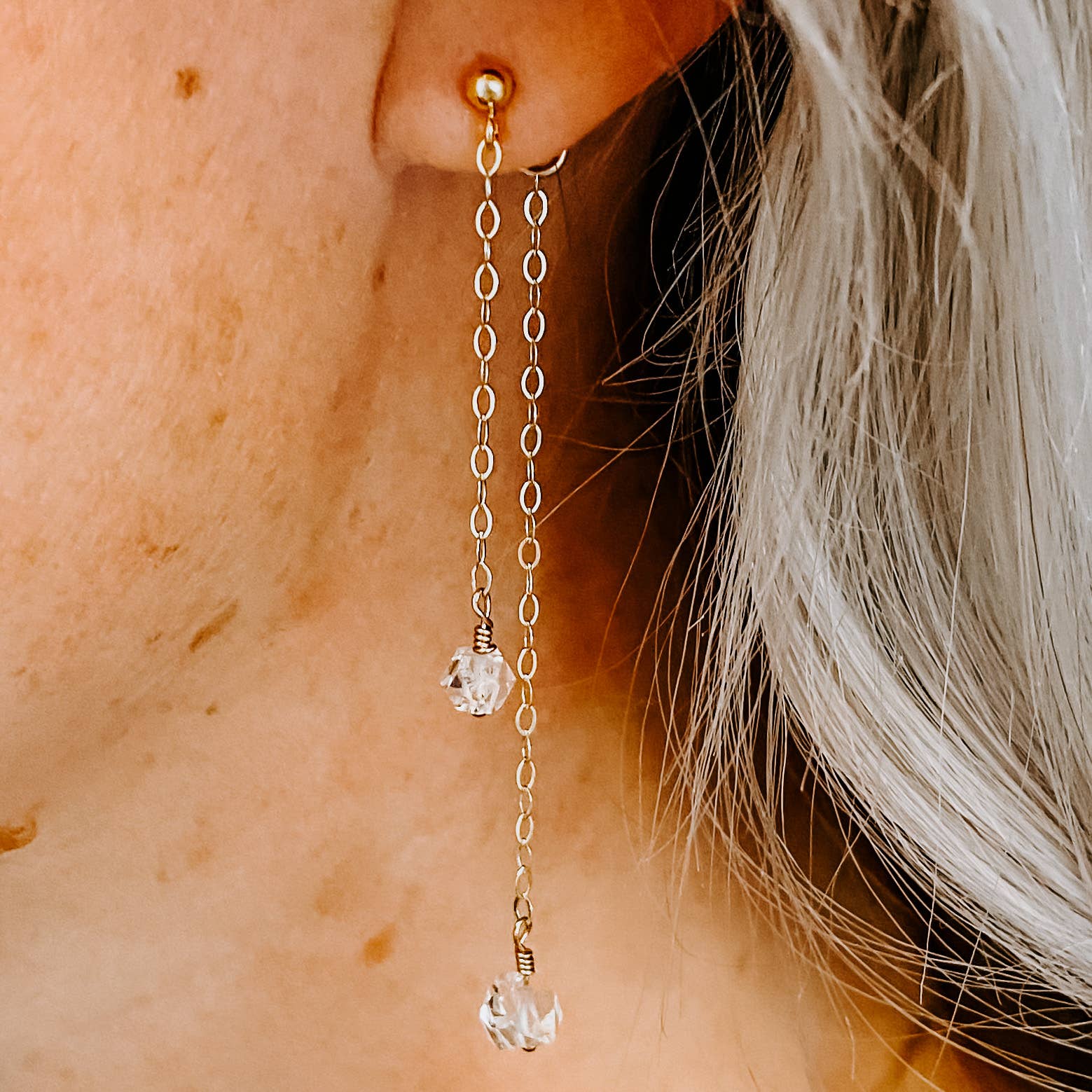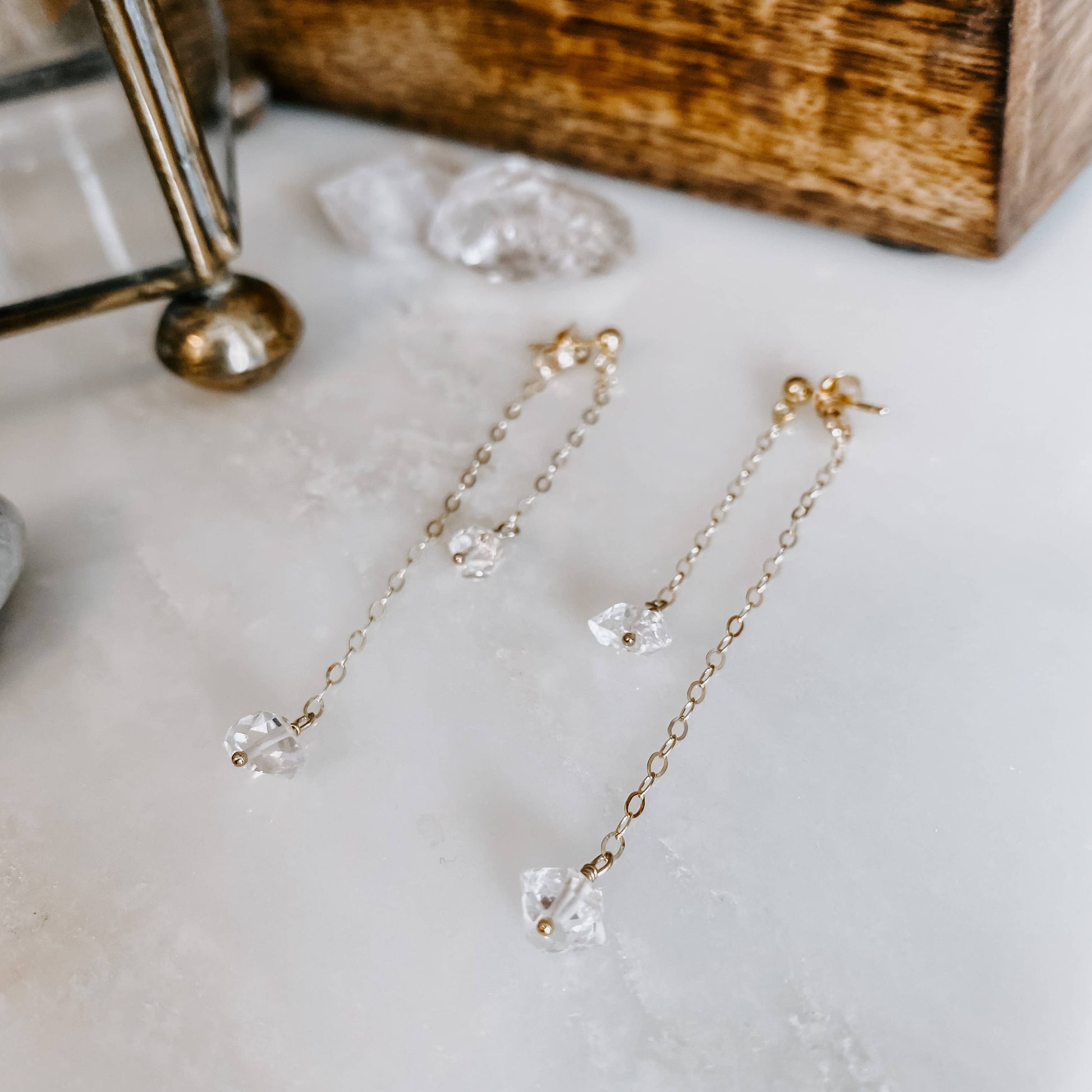 Dainty and feminine Herkimer diamonds dangle from the front and the back on dainty chain.