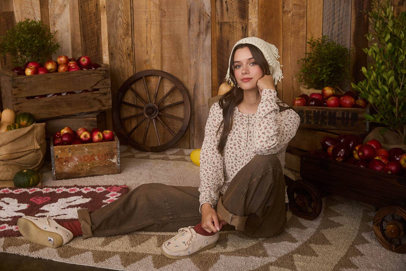 HENLEY NECKLINE LONG SLEEVES DROP SHOULDER BOXY FIT FLORAL PATTERN RIBBED KNIT PATTERN 63%POLYESTER 33%RAYON 4%SPANDEX