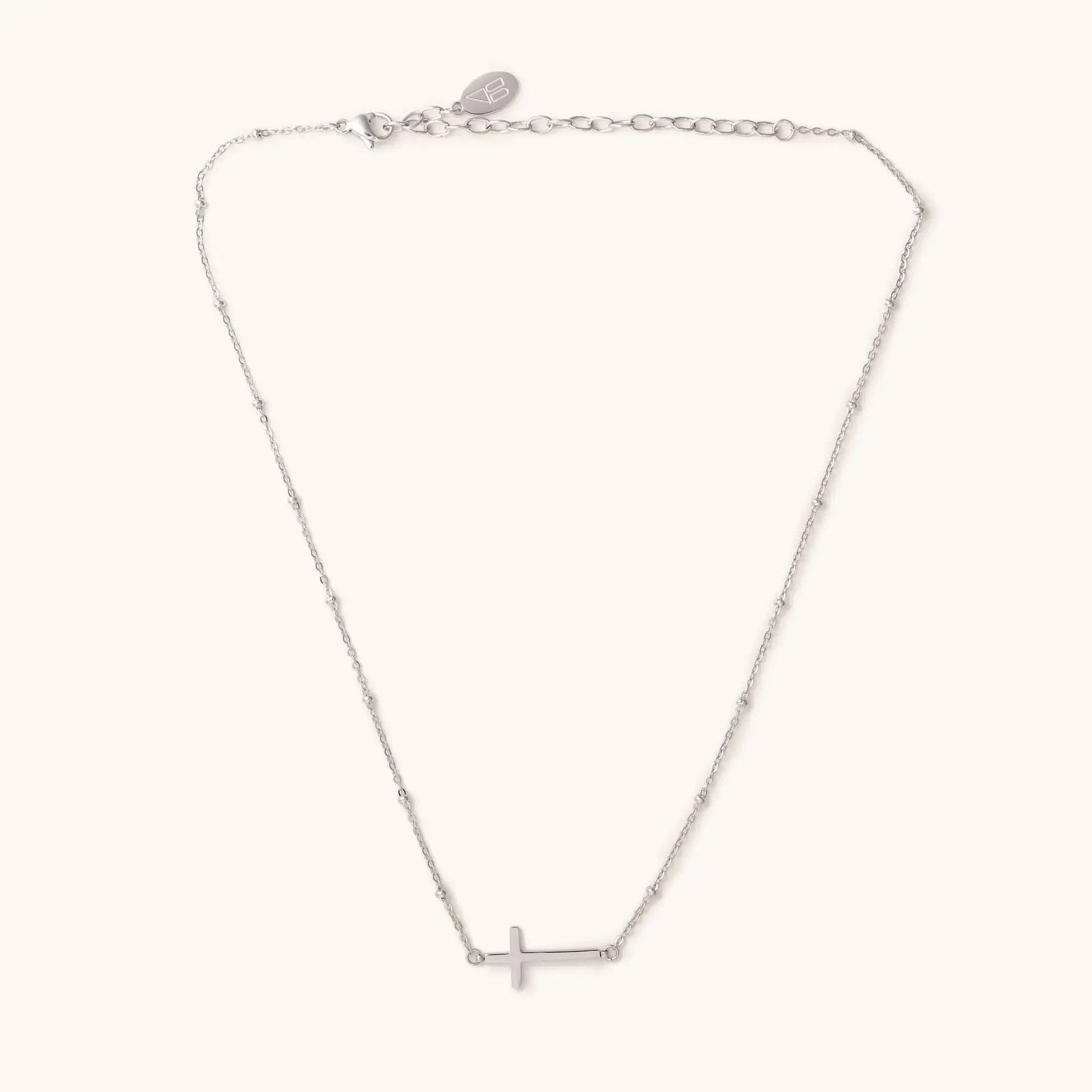 Call us obsessed because we are crazy over this elegant choker necklace. Simply stunning, this cross choker comes in sterling silver and gold Hanging sideways from a shimmering ball chain, this sleek cross look amazing as a layering piece or on its own. Your style will be spot on with this look!