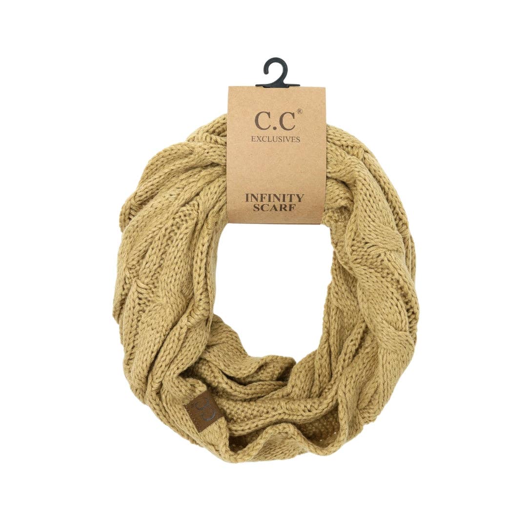 Back to basics in this CC Cable Knit Infinity Scarf! Offering you the look of style in a traditional and timeless cable knit, these infinity scarves will go with any of your cold weather gear!