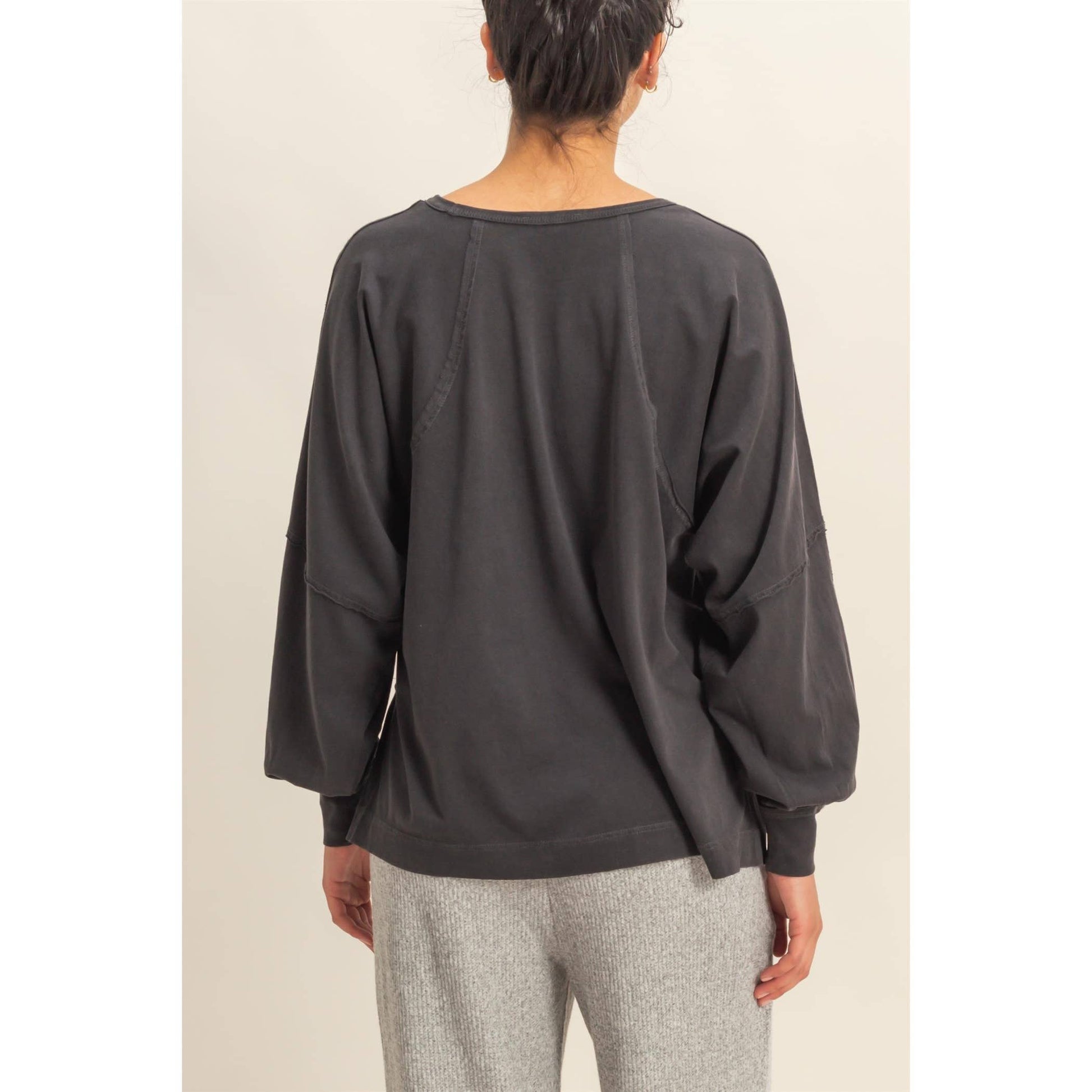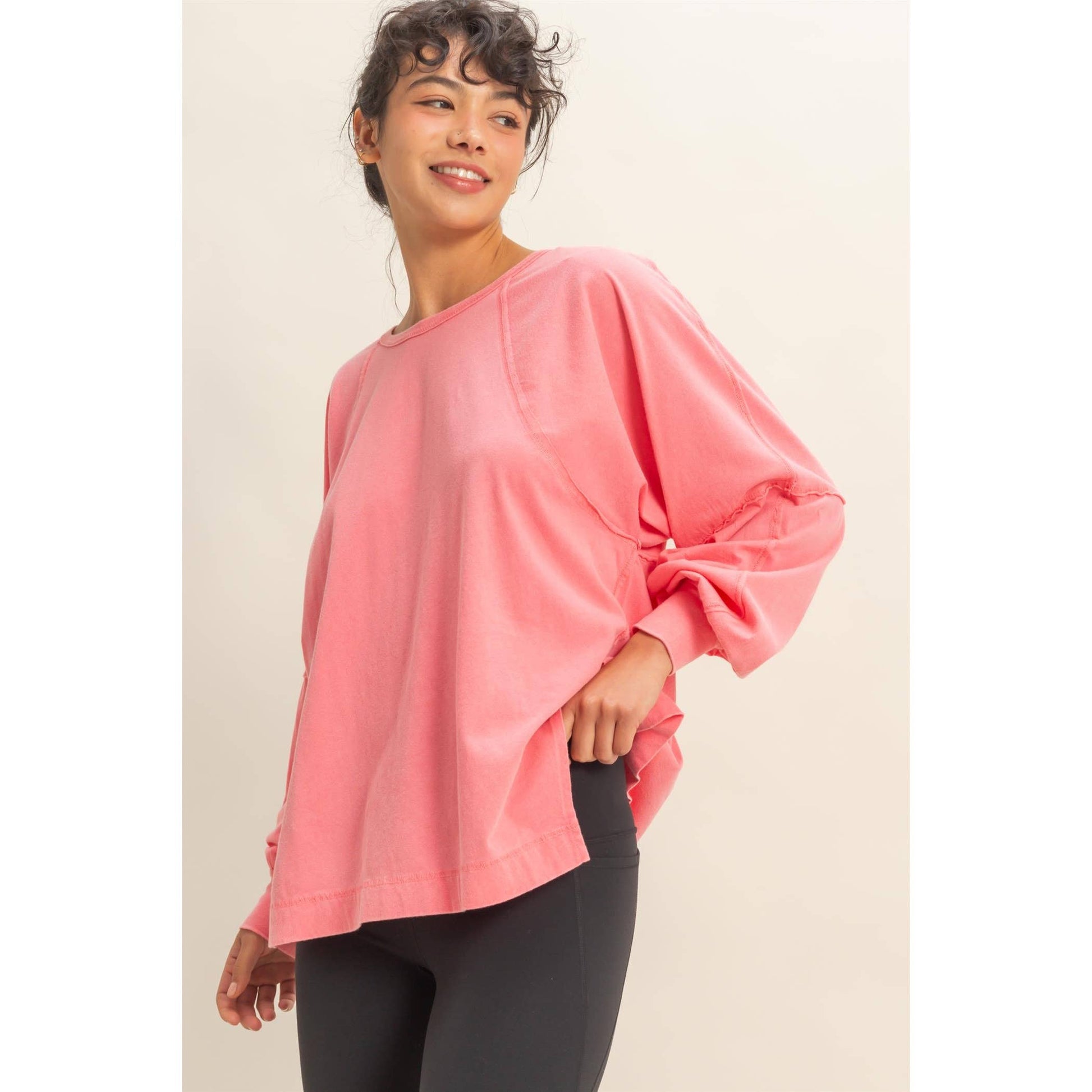 Washed Oversized Long Sleeve Top With Slit