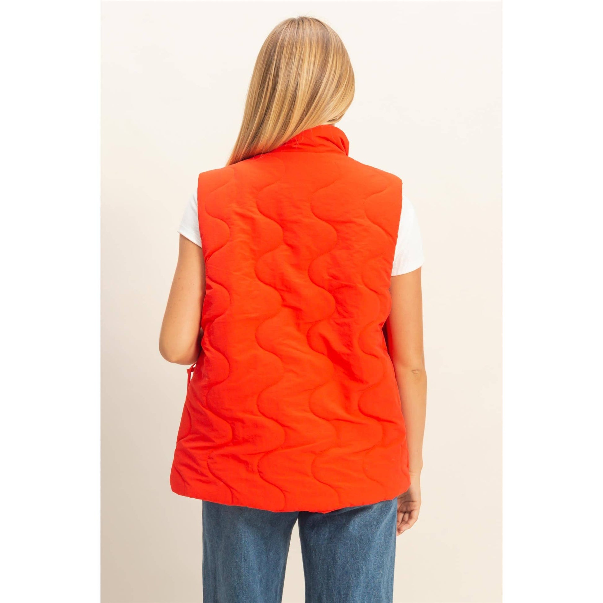 Wave Quilted Ribbon Tie Detailed Puffer Vest
