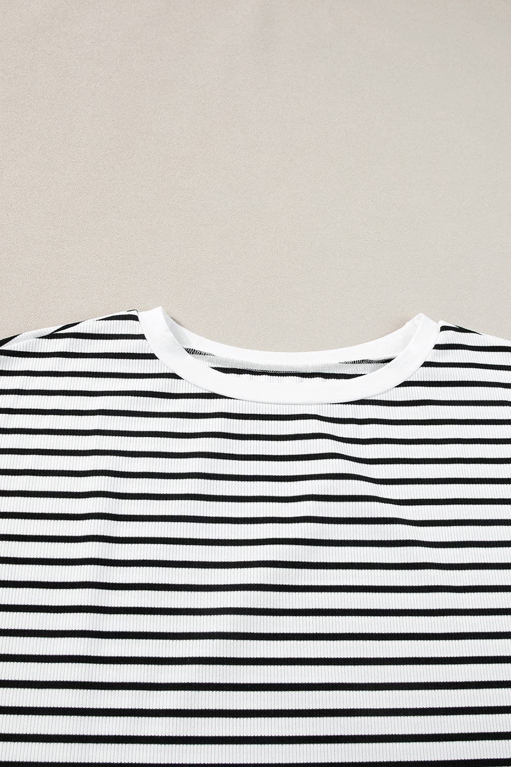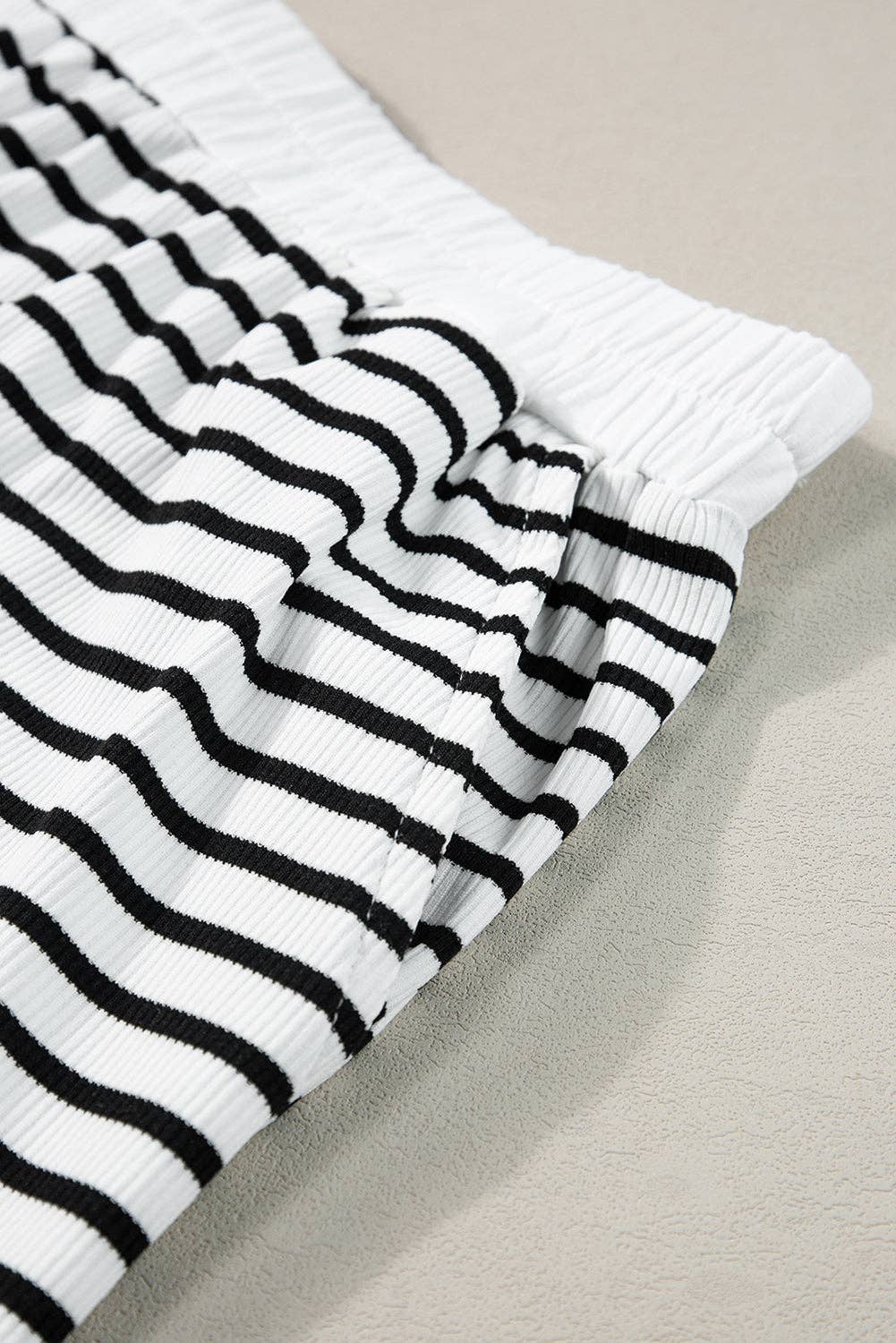 * These striped shorts set are casual and fashionable The relaxed fit and knit texture provide comfort and versatility The classic black and white stripes make this two-piece set never out of date Perfect for lounging, exercise, beach...